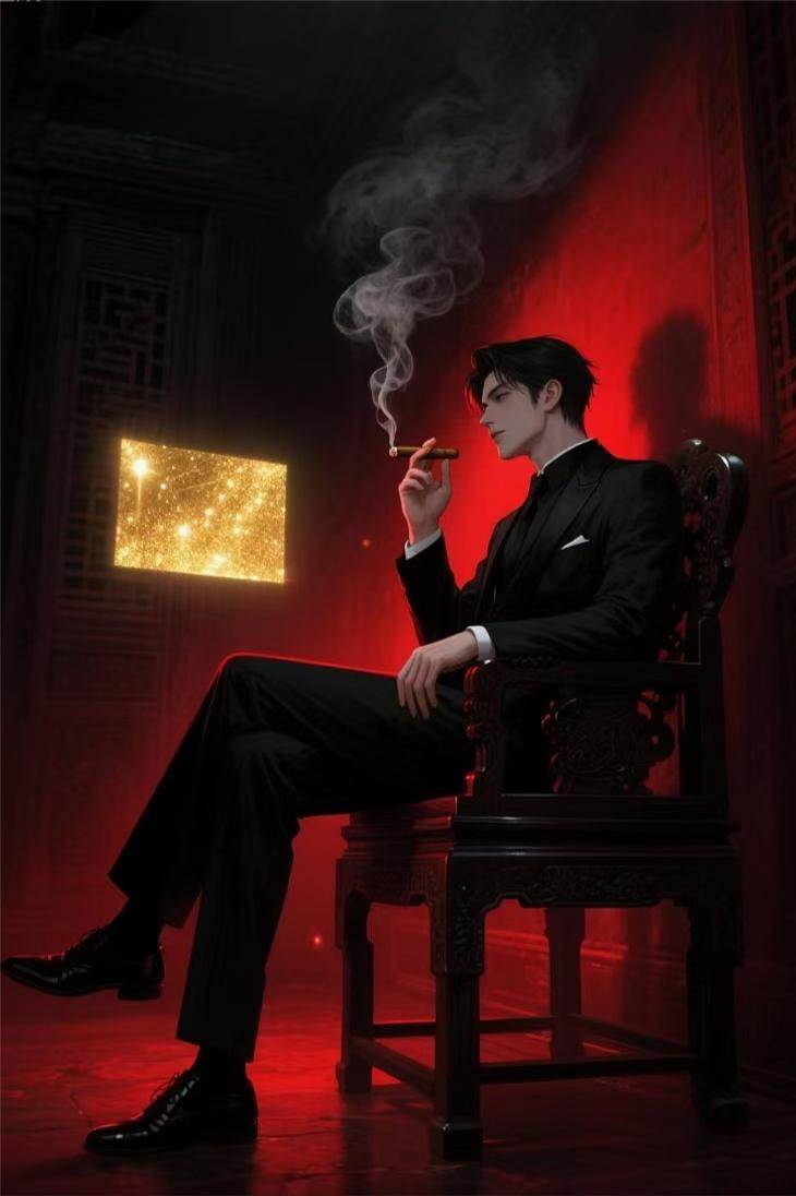 陸獨張古樸太師,指尖夾著根點燃茄,煙繚繞。